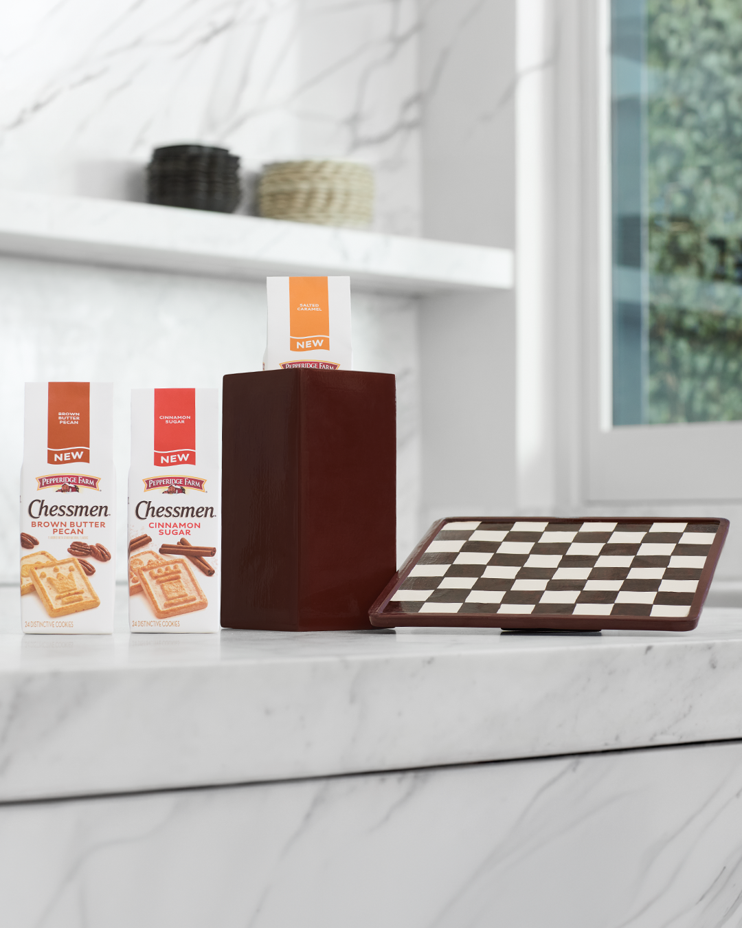 Pepperidge Farm classic Chessmen Butter Cookies were getting reimagined in three new flavors. So we teamed up with Nate Berkus to reimagine two other classics: chess, and the cookie board. Giving us, the Chessmen Cookie Board.